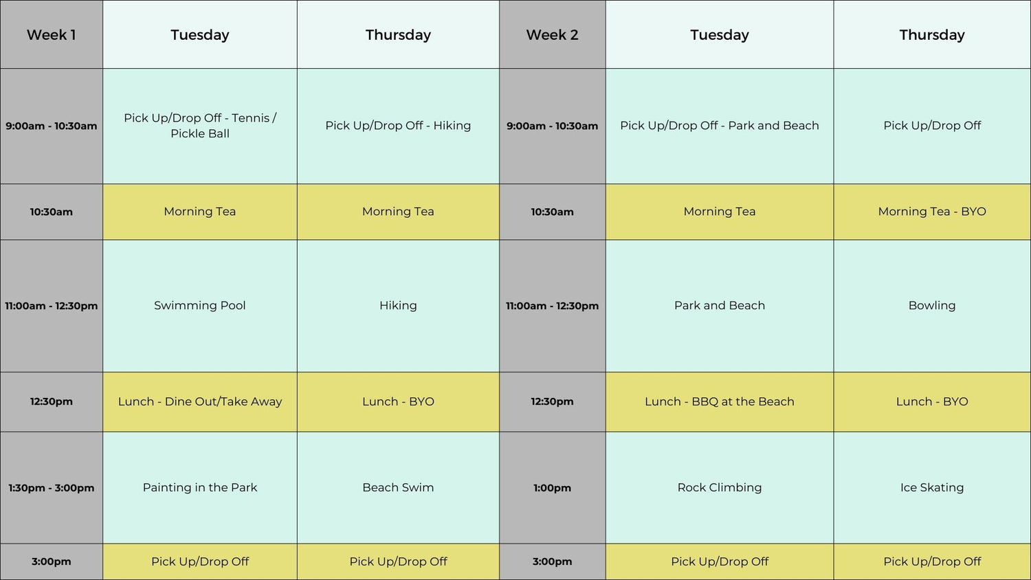 These will be every Tuesday and Thursday running from 9am to 3pm and will include a variety of activities that are on a rotating roster. Alongside frequent weekend activities.